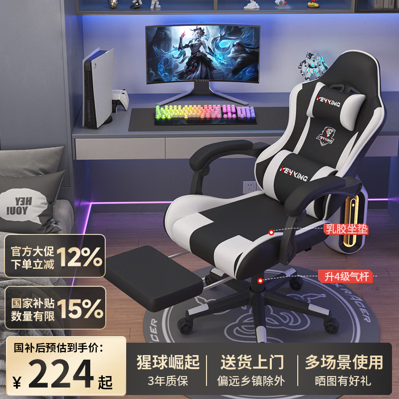 科幻猩电竞椅电脑椅子休闲舒适久坐大学生宿舍家用办公可升降座椅躺椅 暴雪白三代-乳胶坐垫+4级气杆-搁脚 联动扶手