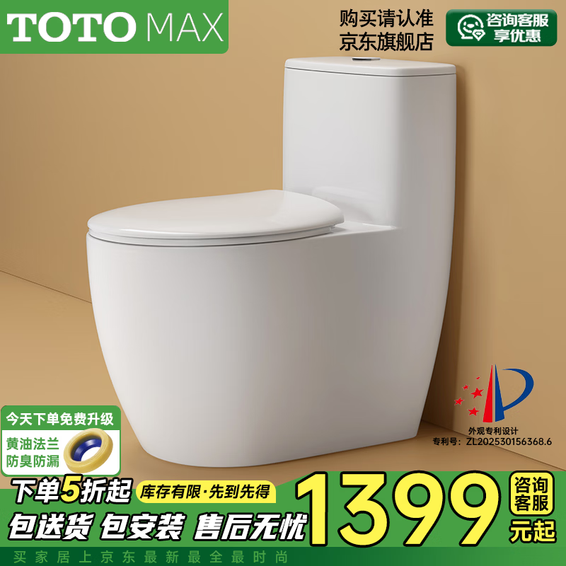 TOTOMAX系列虹吸式普通马桶大冲力静音抽水家用坐便器 CT966【双炫冲水+智洁釉面】 拍下备注250/300/350/400坑距