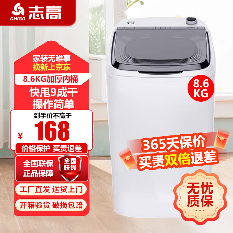 志高【热销Top1】脱水机单甩干脱水机干桶甩干机小型迷你家用甩干桶出租房宿舍大容量脱水桶烘干 8.6KG【加厚普通款】质保三年 波轮