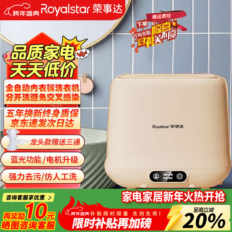 荣事达(Royalstar)全自动洗烘一体迷你内衣裤懒人小型波轮洗衣机母婴洗袜子机高温煮洗杀菌以旧换新国家政府补贴15% 【蛋可白基础款】塑料内筒+蓝光抑菌