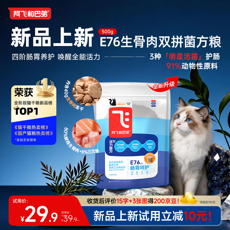阿飞和巴弟【新品】E76益生菌猫粮养胃生骨肉冻干成幼通用猫粮500g