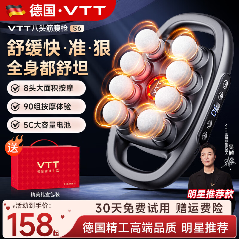 VTT【德国】十六头筋膜枪按摩器肩颈腰背全自动揉捏腿部全身深层肌肉电动颈膜小腿仪生日礼物送女生 【升级八头】30档+动力锂电池+德国品牌大电机灰