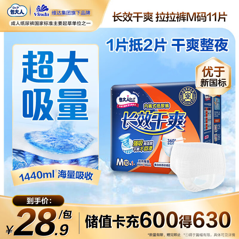 包大人(Dr.P)长效干爽成人拉拉裤M11片腰围:50-120cm老年人产妇 内裤型纸尿裤