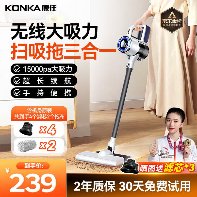 康佳吸尘器无线吸拖一体机家用大吸力手持小型轻音大功率洗地机-A 【无忧套装】4滤芯+2拖布 滤芯可用一年-灰