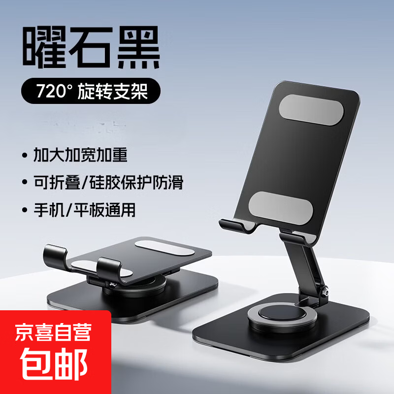 碳钢金属底座手机支架IPAD平板支架懒人桌面直播拍视频旋转高度可调节升降小巧便携支撑架可折叠 【全金属升级】方型底座加重加大-星耀黑