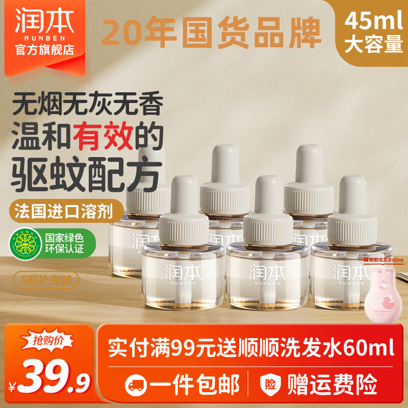 润本电热蚊香液无香定时蚊香器电蚊香补充液防蚊水家用驱蚊液蚊怕水 【回购推荐】无味6瓶液(不含器)