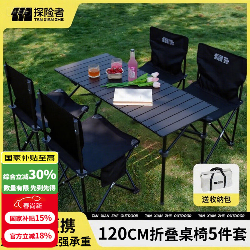 探险者(TAN XIAN ZHE)露营桌椅露营装备全套一体户外桌椅套装便携折叠桌子四椅子野餐桌 【120CM】4-8人曜黑一桌四椅五件套-赠收纳包