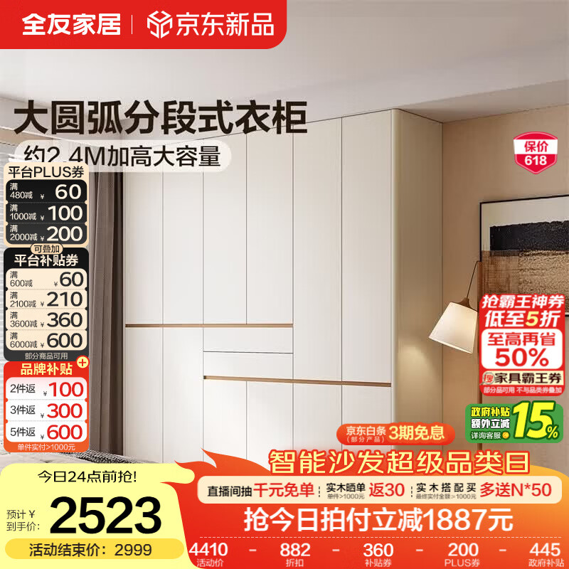 全友家居原木风成品衣柜收纳储物衣橱柜子卧室家用顶天立地大衣柜组合 【2.45*2.4m】加高六门衣柜