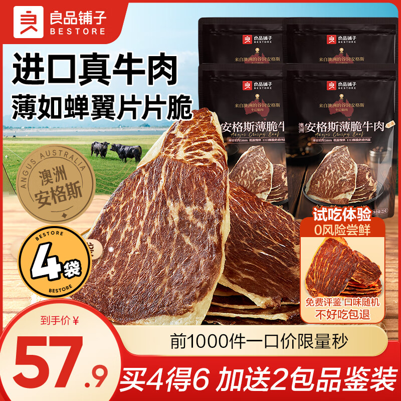 良品铺子安格斯薄脆牛肉脆片牛脆脆牛排脆牛肉干肉脯休闲零食大礼包解馋 【买4送2】原味22g*4送2包品鉴装 100%安格斯牛