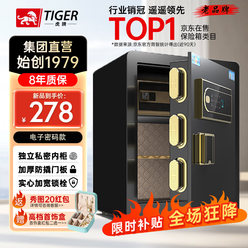 虎牌保险柜家用小型指纹密码WIFI全钢防盗可入墙办公大型保险箱新款保管箱 45cm系列-独立私密内柜款 密码款(钥匙/密码解锁)
