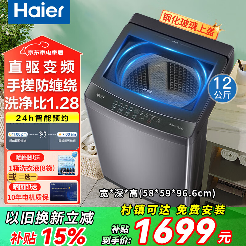 海尔(Haier)洗衣机全自动波轮12公斤直驱变频一级能效智能预约抗菌除螨大容量神童洗衣机防缠绕速洗 以旧换新 【海尔】12kg直驱变频+手搓防缠绕+智能预约 波轮