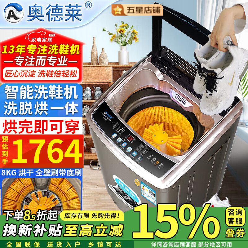 奥德莱(AOD)【换新补贴15%】洗鞋机全自动洗脱一体家用风干烘干全自动刷鞋机滚筒洗鞋子擦鞋器洗鞋神器一体机 8kg全自动-家用烘干-全壁刷+底刷波轮