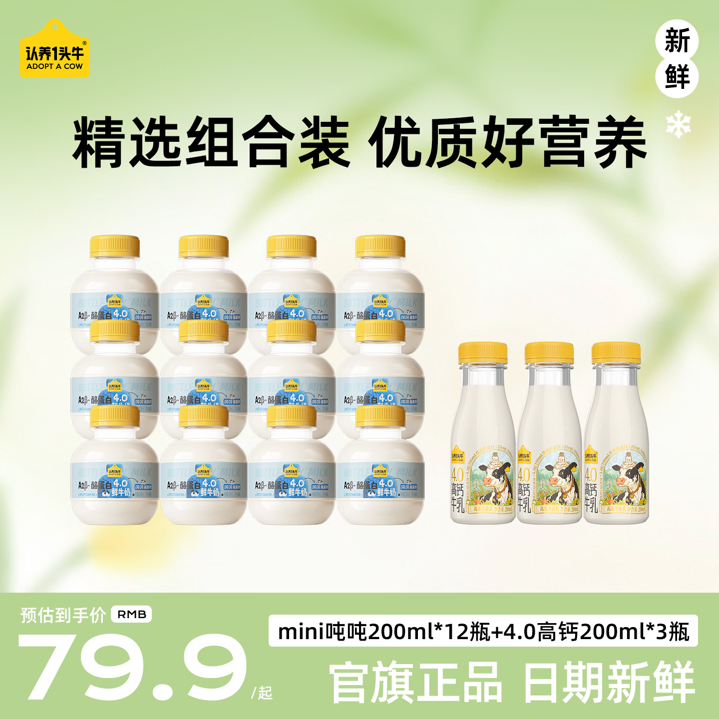 认养一头牛【代言人同款】mini吨吨奶A2β-酪蛋白4.0牛乳鲜牛奶营养儿童牛奶 【组合装】mini吨吨200ml*12瓶+4.0高钙200ml*3瓶