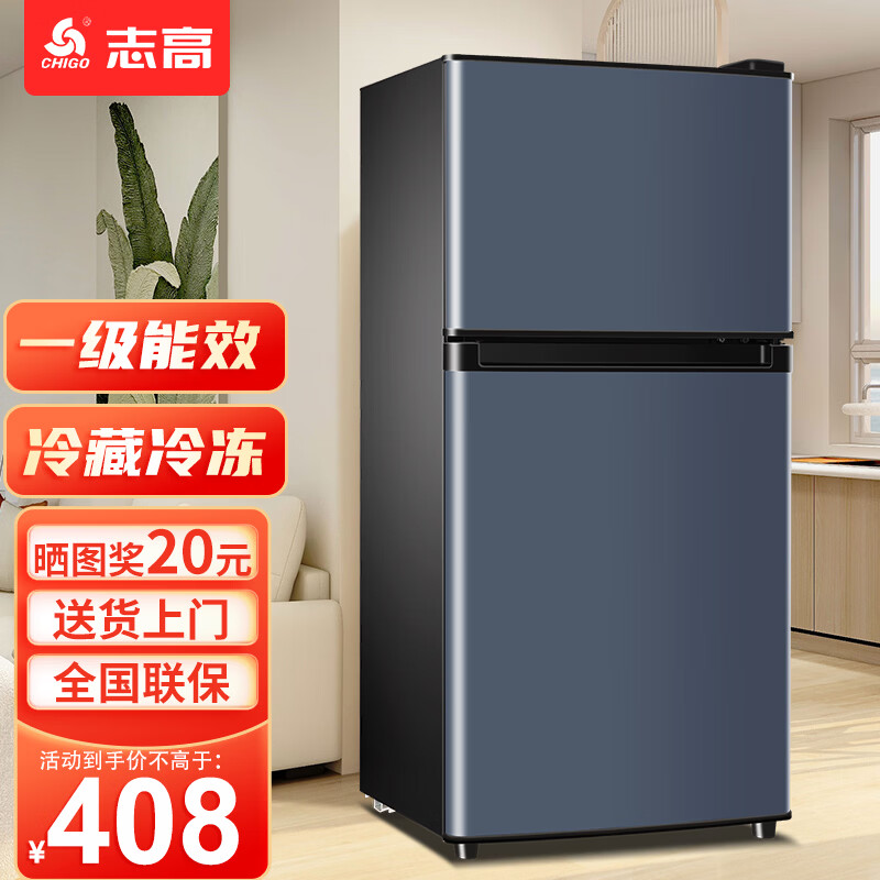 志高(CHIGO)小冰箱迷你小型家用冷藏冷冻两用宿舍出租房用双门办公室电冰箱节能省电 【一级能效】76L灰色【全国联保丨节能省电】
