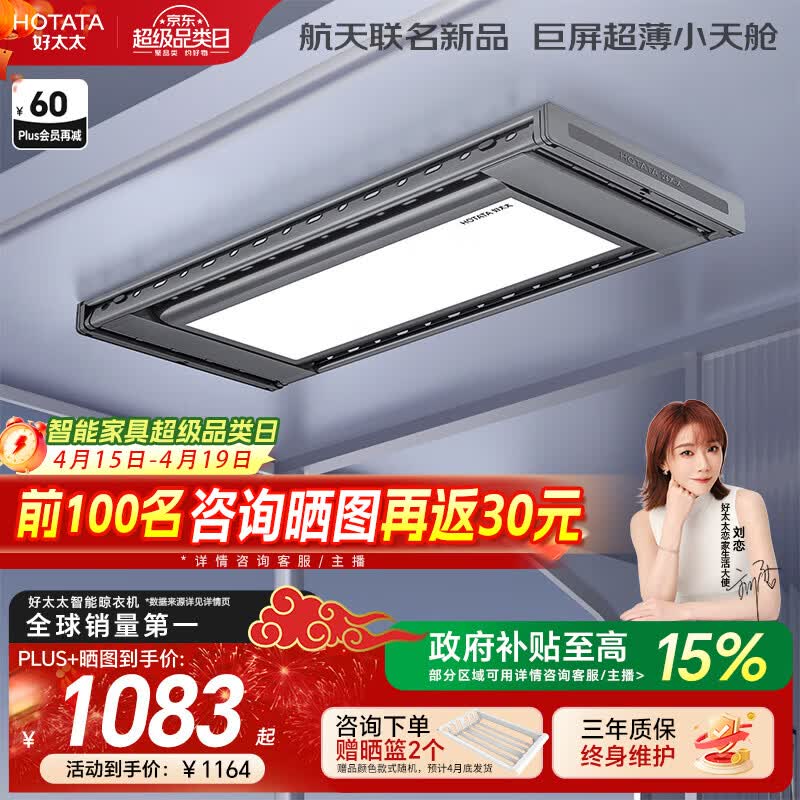 好太太电动晾衣架智能晾衣机隐形嵌入式全自动智能升降阳台伸缩晾晒衣机 D-3071:航天联名款+大屏照明