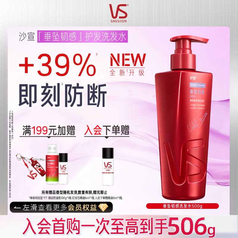 沙宣大红瓶垂坠韧感洗发水500g男女士洗头膏洗发露强韧发丝抚平毛躁