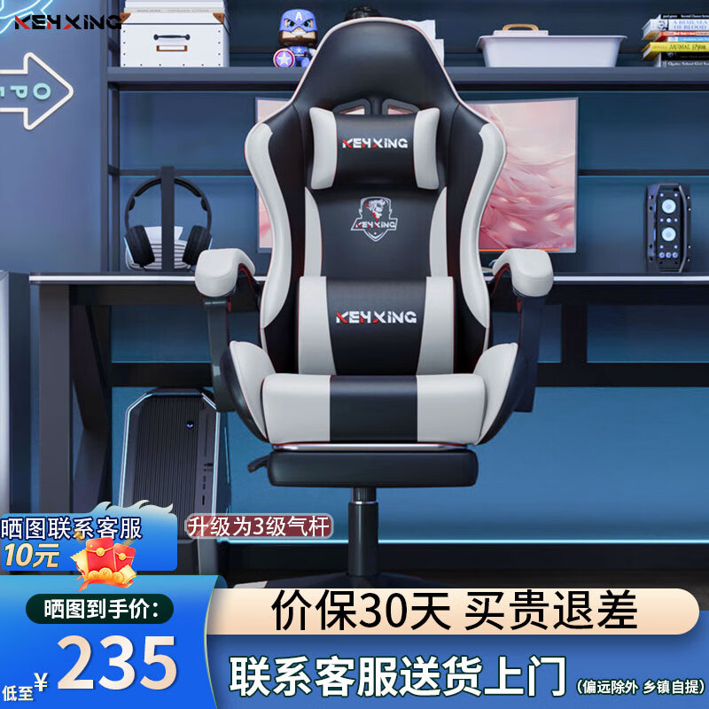 科幻猩电竞椅电脑游戏椅舒服久坐家用椅子办公椅可躺可升降椅座椅躺椅 猩球觉醒-黑白-乳胶坐垫+搁脚+三级气杆-尼龙脚 滑轨扶手