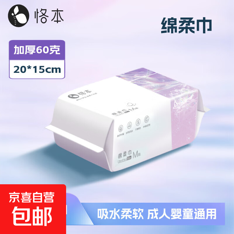 恪本绵柔巾 加厚加大珍珠纹干湿两用婴童成人通用洗脸巾 1包*50抽(20*15cm)
