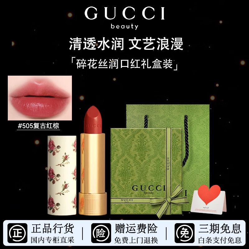 古驰(GUCCI) 口红绒雾哑光208碎花丝润套装唇釉505217生日礼物圣诞礼物送女生 【热卖】丝润口红 505#意式红棕