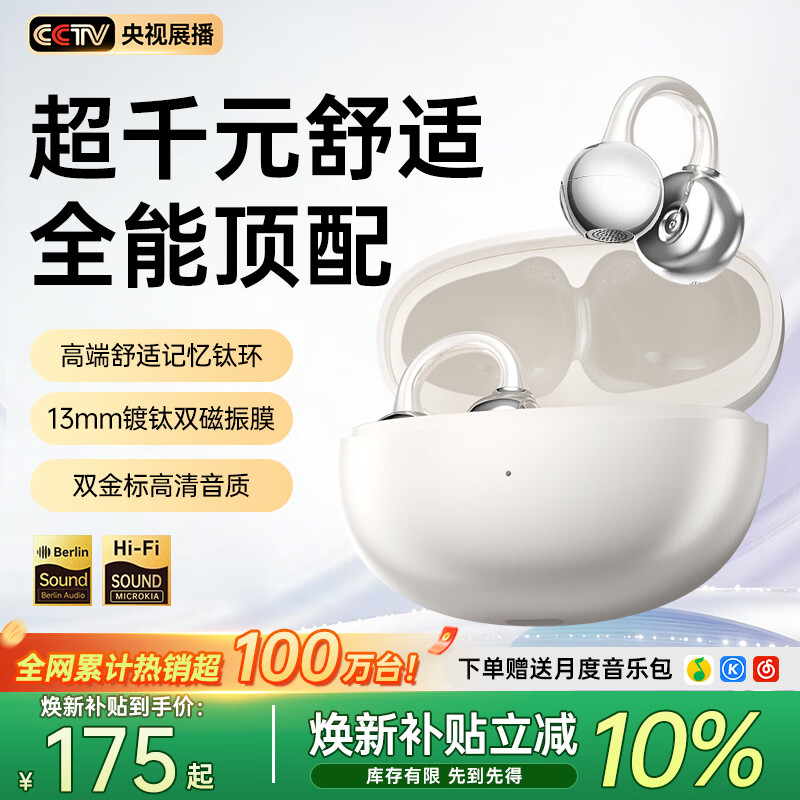 MICROKIA【2026最新款|柏林之声第1】蓝牙耳机耳夹式骨传导概念开放式无线不入耳运动跑步游戏通话降噪挂耳 【Pro舒适升级】重磅新品 | 羽沙白 榜单第一|适用于苹果小米荣耀