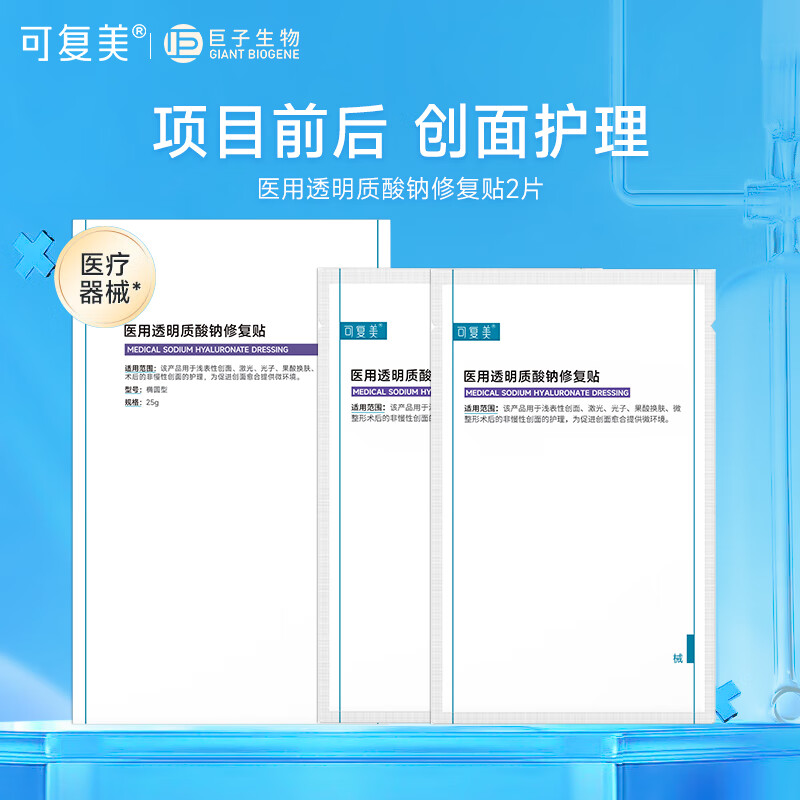 可复美液体敷料 医用透明质酸钠修复贴 果酸换肤激光子术后创面部护理 医用修复贴2片【2片/盒】