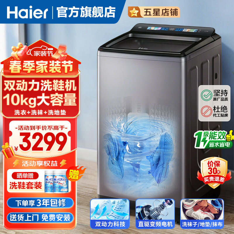 海尔(Haier)洗鞋机全自动刷鞋机可脱水家用智能洗脱一体多功能懒人洗鞋神器迷你免拆鞋带 【新品首发 双动力科技 10KG大容量】TB618