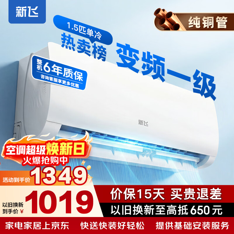 新飞(Frestec)空调 新一级能效 大1.5匹大1匹全铜管挂机 以旧换新 省电冷暖变频空调 家用壁挂式空调 单冷 变频 1.5匹 一级能效 提供基础安装服务