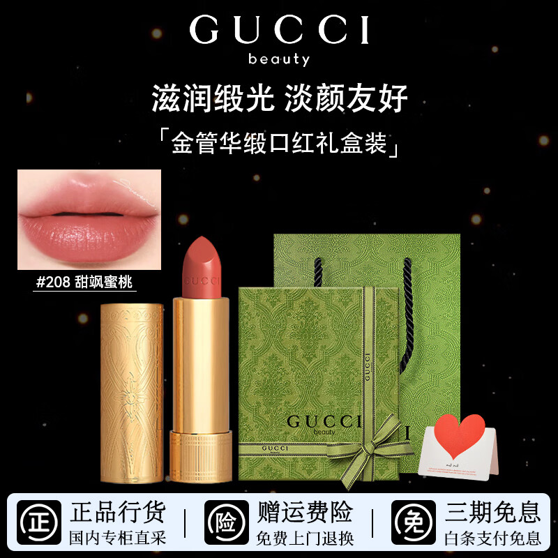 古驰(GUCCI) 口红绒雾哑光208碎花丝润套装唇釉505217生日礼物圣诞礼物送女生 【热卖】华缎口红 208#甜飒蜜桃