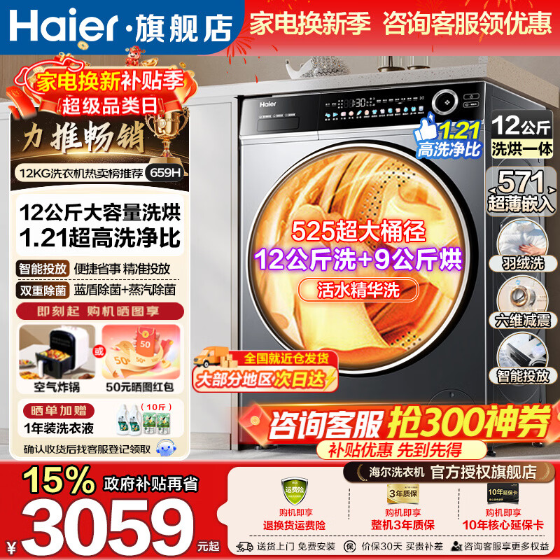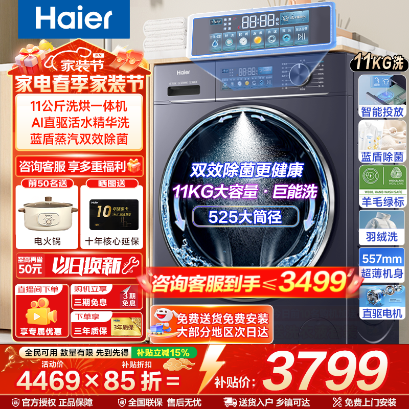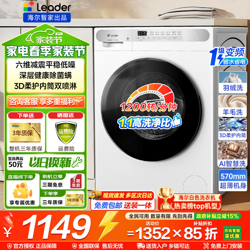 海尔(Haier)10kg全自动滚筒洗衣机大容量超薄洗衣机带烘干洗烘一体机一级能效节能除菌螨Leader 以旧换新补贴 【热销白】 滚筒单洗 1.1洗净比+六维减震+柔护内筒