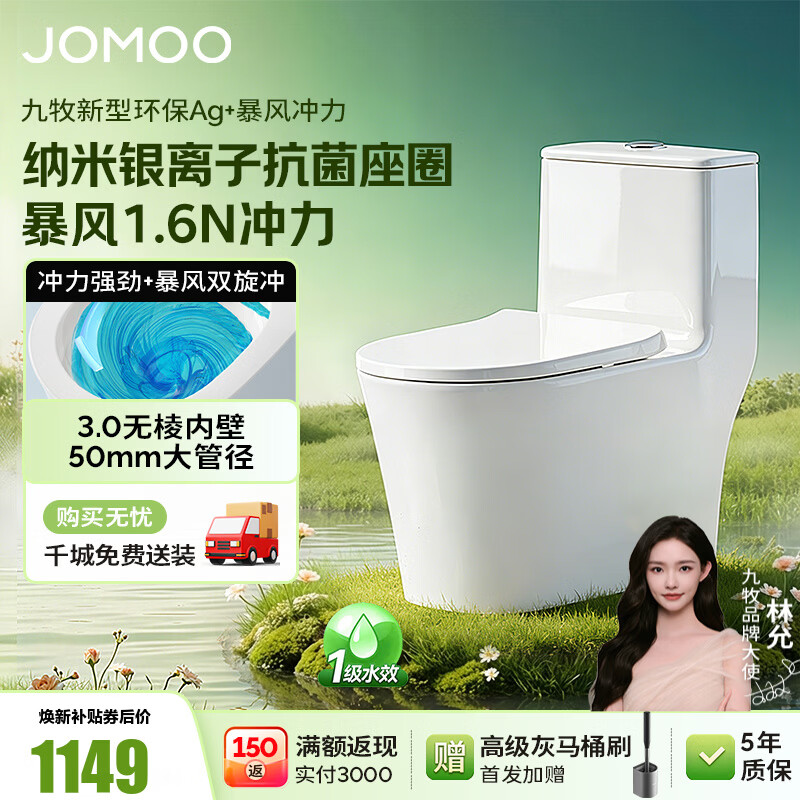 九牧(JOMOO)马桶 家用虹吸式马桶大冲力节水坐便器 防臭瞬冲 易洁抗菌马桶 银离子抗菌-易洁无棱11322-305坑