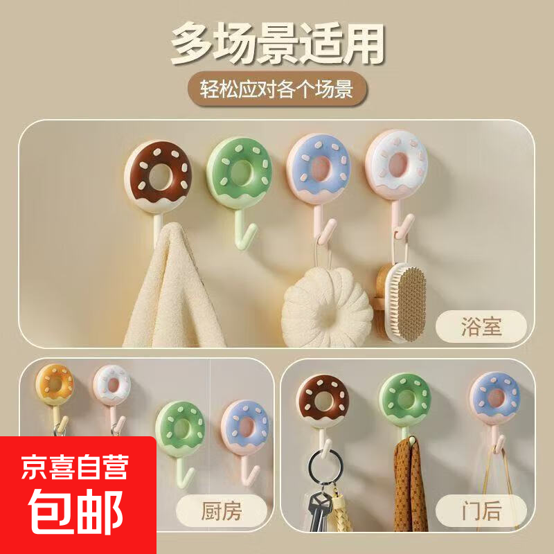 箱包甜甜圈创意小挂钩可爱学生宿舍强力无痕厨房家用箱包挂钩 5个装【甜甜圈挂钩】