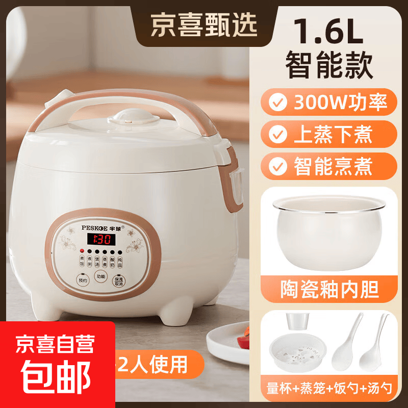 半球(PESKOE)电饭煲电饭锅家用电饭煲1-2人升可蒸煮宿舍可用不粘锅不溢锅1.6-5L小型单人老式家用电 智能款 1.6L 【陶瓷釉球胆】1-2人用