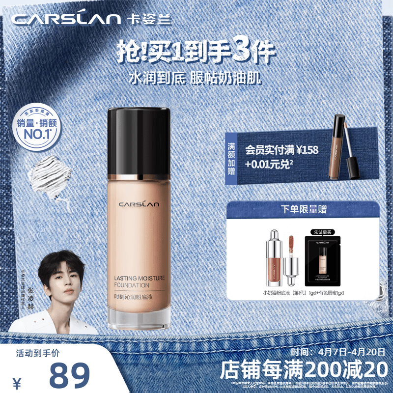 卡姿兰(Carslan)双猫粉底液遮瑕控油bb霜持久不易脱妆不卡粉奶夜混猫生日礼物女友 【1代】01白皙偏白-干皮/混干