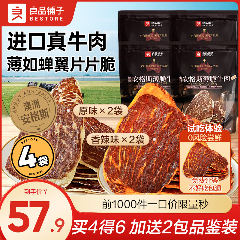 良品铺子安格斯薄脆牛肉脆片牛脆脆牛排脆牛肉干肉脯休闲零食大礼包解馋 【买4送2】双口味4袋送2包品鉴装 100%安格斯牛