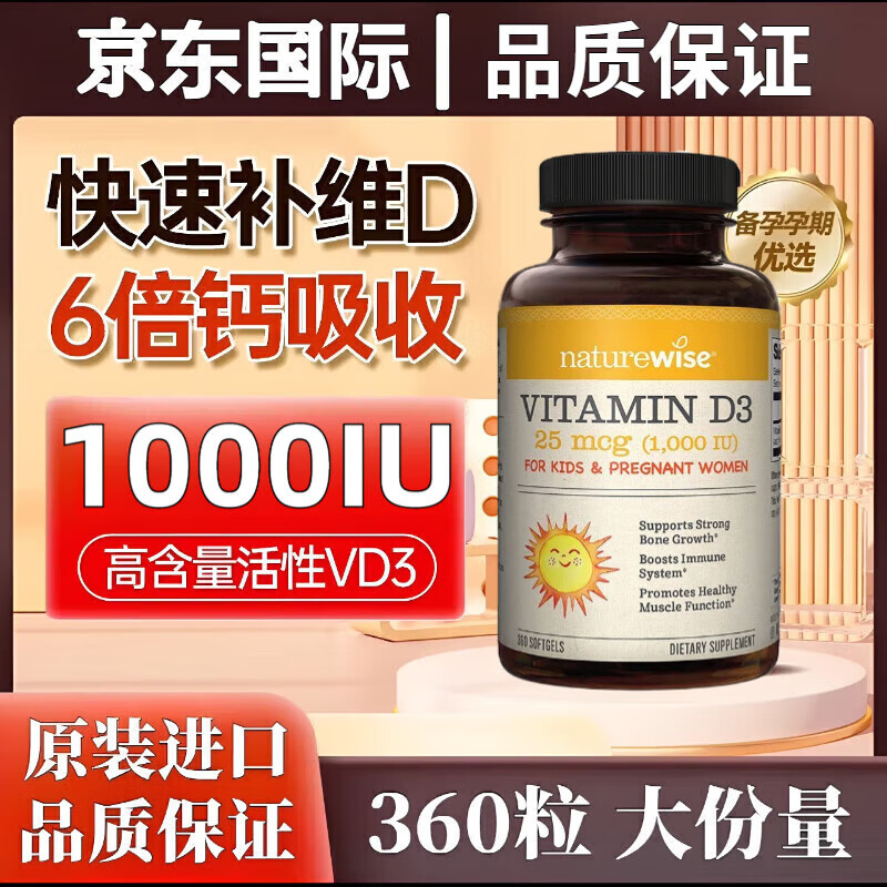 自然薇萃【限时秒杀】阳光瓶360粒维生素d3活性25羟基全家补钙男女备孕VD3 【儿童D3】 1000IU 360粒*1瓶