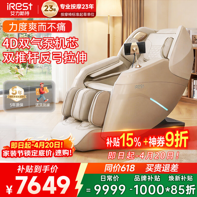 艾力斯特(iRest)S730pro/S730按摩椅家用2026全身太空舱全自动智能零重力豪华电动多功能按摩理疗爸爸妈妈生日礼物 【火爆预售4.23发】S730pro香槟金