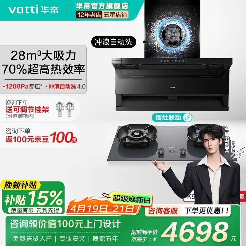 华帝(VATTI)K9烟灶套装【小飞翼Pro K9系列 】超薄顶侧双吸28风量大吸力自清洗烟灶联动抽油烟机灶具以旧换新 【星韵灰定时套装】K9+310D燃气灶-咨询买性价比309D灶 天然气