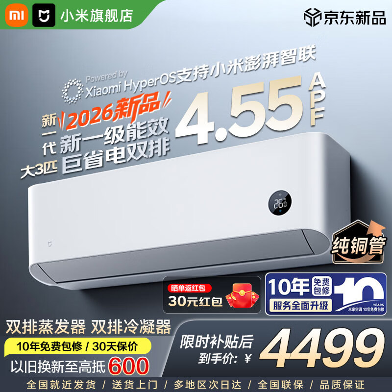 小米(MI)空调米家 3匹 巨省电 自然风Pro大挂机 新一级能效 变频冷暖 智能互联 客厅壁挂式 舒适大挂机 巨省电 26款 大3匹 APF4.55 AI节能 双排