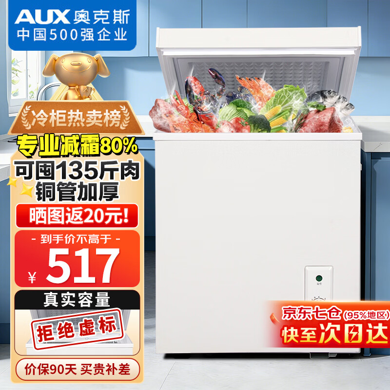 奥克斯(AUX)小冰柜家用小型冷藏柜冷冻柜两用冰柜小型租房家用小冰箱小型冷柜 铜管/166升级/可囤135斤肉/减霜80% 89升