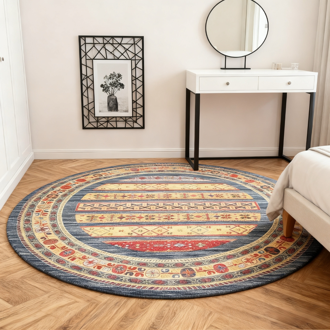 欧纶斯(Oulens)圆形地毯轻奢风高级感客厅地垫茶几毯卧室门口沙发床边毯可水洗 复古圆形6 120cm*120cm 【耐脏易打理】