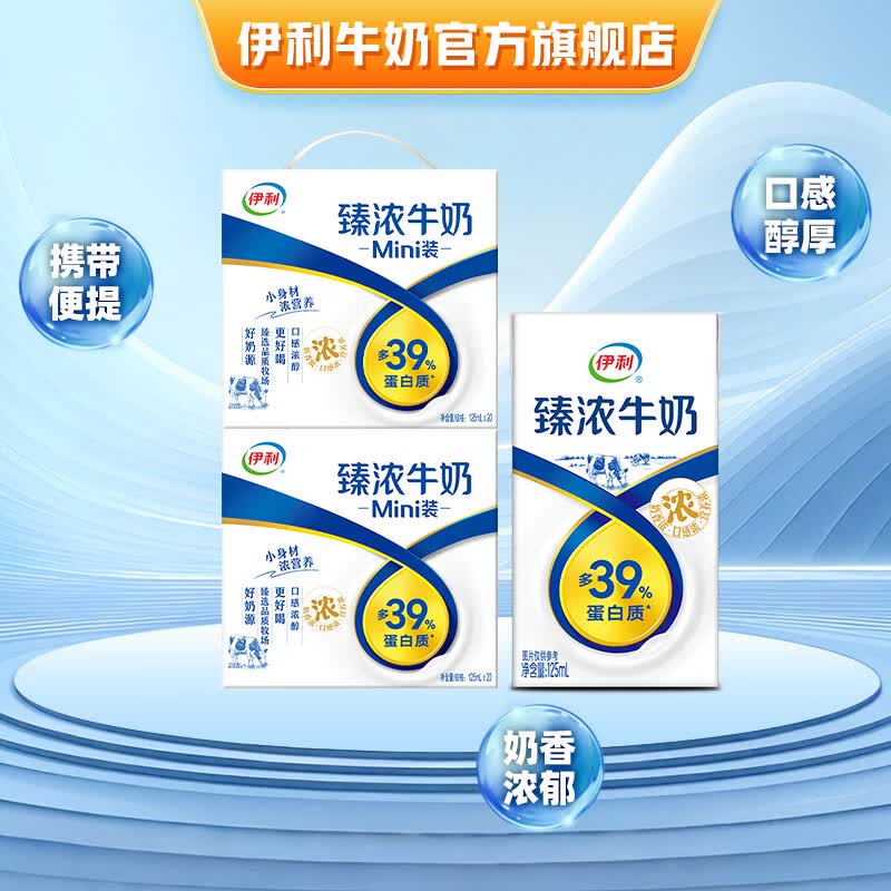 伊利牛奶系列 营养早餐搭配 优质乳蛋白 礼盒装 【咖啡伴侣】臻浓迷你牛奶125ml*20盒*2提 4月产