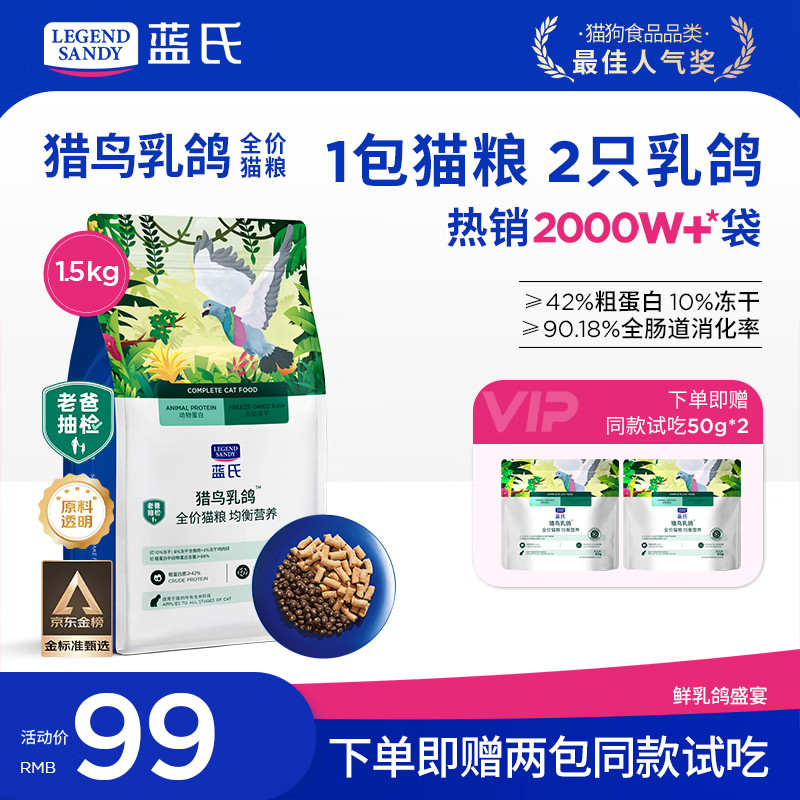 LEGENDSANDY蓝氏猫粮生鲜猎鸟鲜乳鸽生骨肉冻干高蛋白全价成猫粮幼猫通用型 一袋猫粮两只乳鸽丨猎鸟乳鸽丨1.5kg