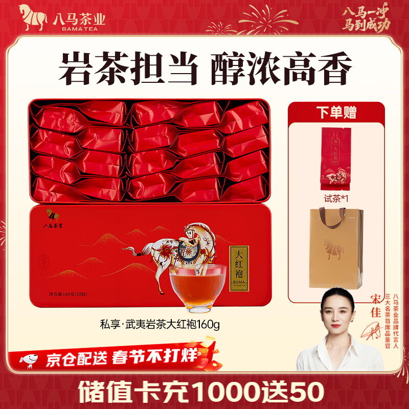 八马茶业 金骏眉/大红袍/肉桂/单枞/铁观音/白茶/茉莉花茶 茶叶自己喝 【武夷岩茶大红袍】160g