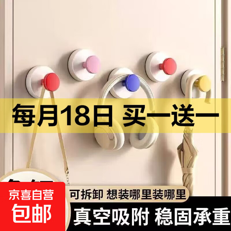 耳机挂钩多巴胺粘胶吸盘挂钩免钉强力承重无痕客厅卧室挂钩门后钥匙置物架 颜色随机*4个装