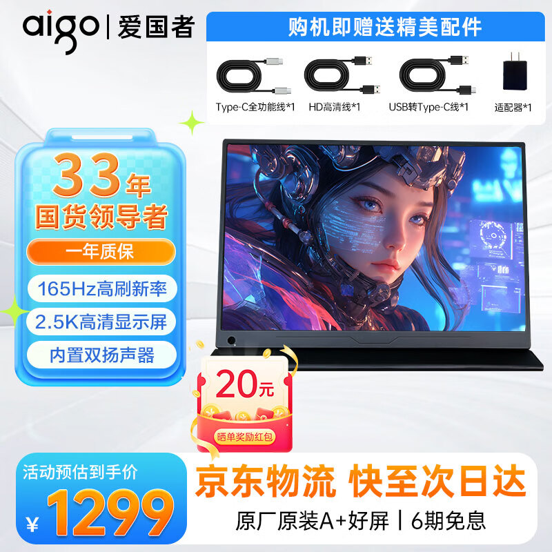 爱国者aigo便携显示器 IPS电脑手机便携屏笔记本支架显示屏扩展屏 PS4/5 Switch副屏Type-C一线通 【超清2.5k】18英寸/电竞游戏款/165Hz