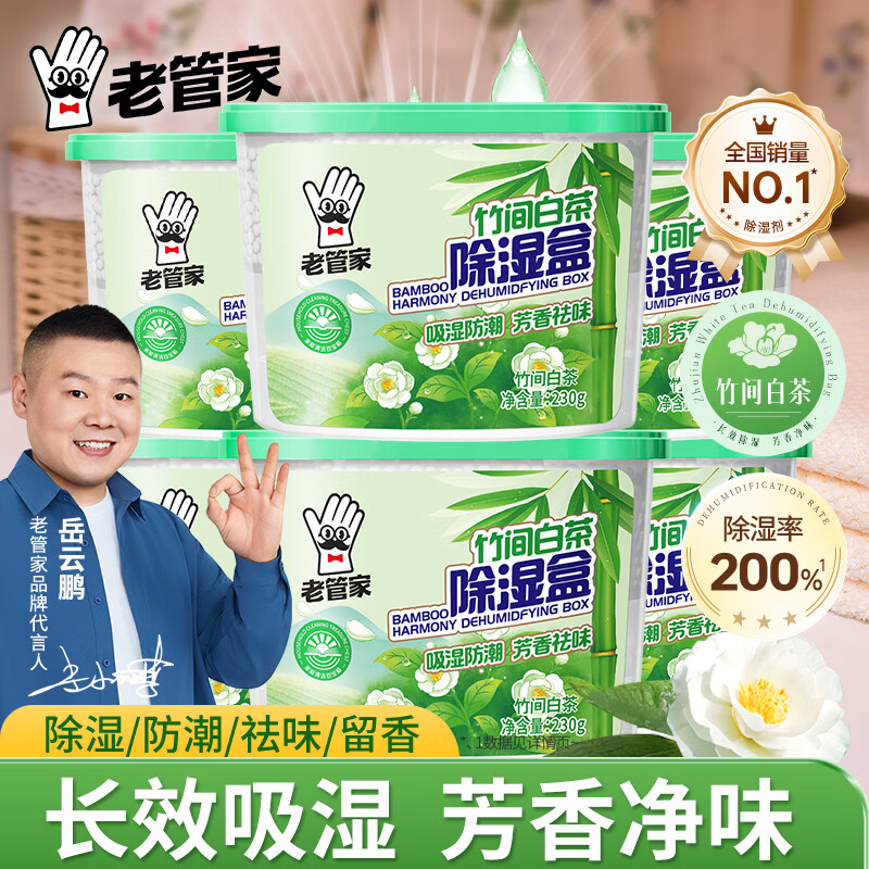 老管家竹间白茶除湿盒230g家用干燥剂室内衣柜房间汽车吸湿袋防霉防潮剂 230g*6盒【实惠装】