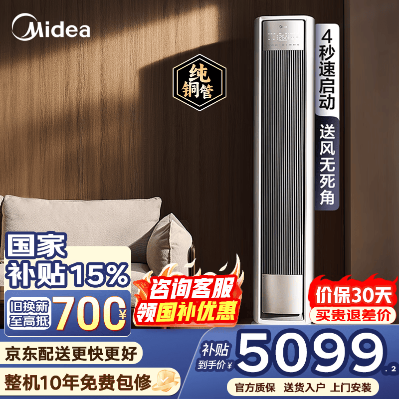 美的(Midea)空调立式大3匹风尊二代全面风柜机新一级能效变频冷暖客厅高颜值柜式空调大风量APP智控 国家补贴 大2匹一级能效全面大风口 无死角送风