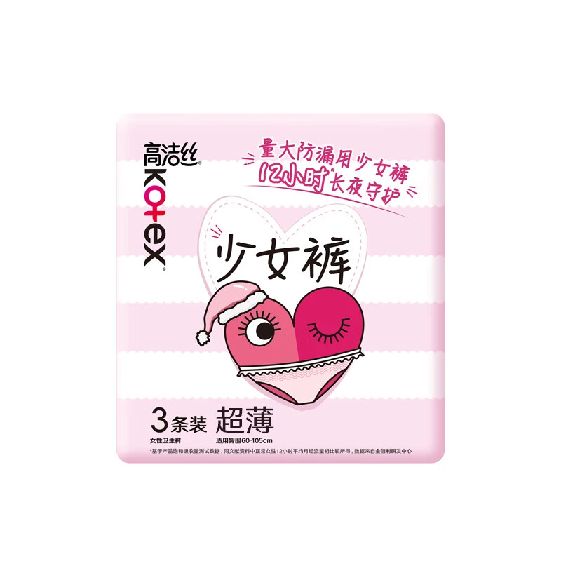 高洁丝(Kotex)夜用安睡裤 夜安裤少女裤型卫生巾姨妈巾组合码数可选 F码-均码 3条 80-110斤 少女裤 超薄