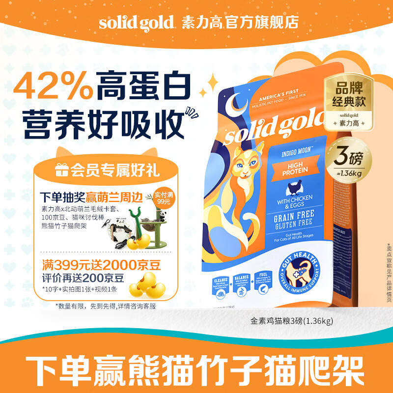 素力高(SolidGold)进口高蛋白金装金素鸡长肉营养成猫幼猫猫粮 【基础营养丨3周尝鲜】金素鸡3磅/1.36kg