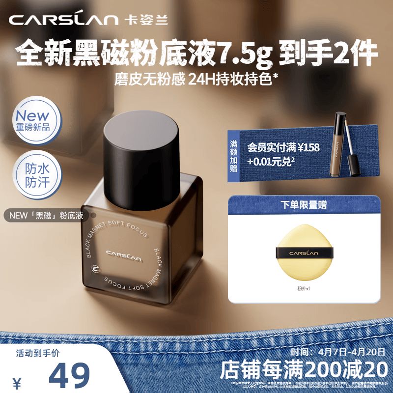 卡姿兰(Carslan)黑磁粉底液遮瑕自然防水汗持妆控油BB霜抗暗沉化妆品生日礼物女友 P02-自然偏白(常规版瓶装7.5g)